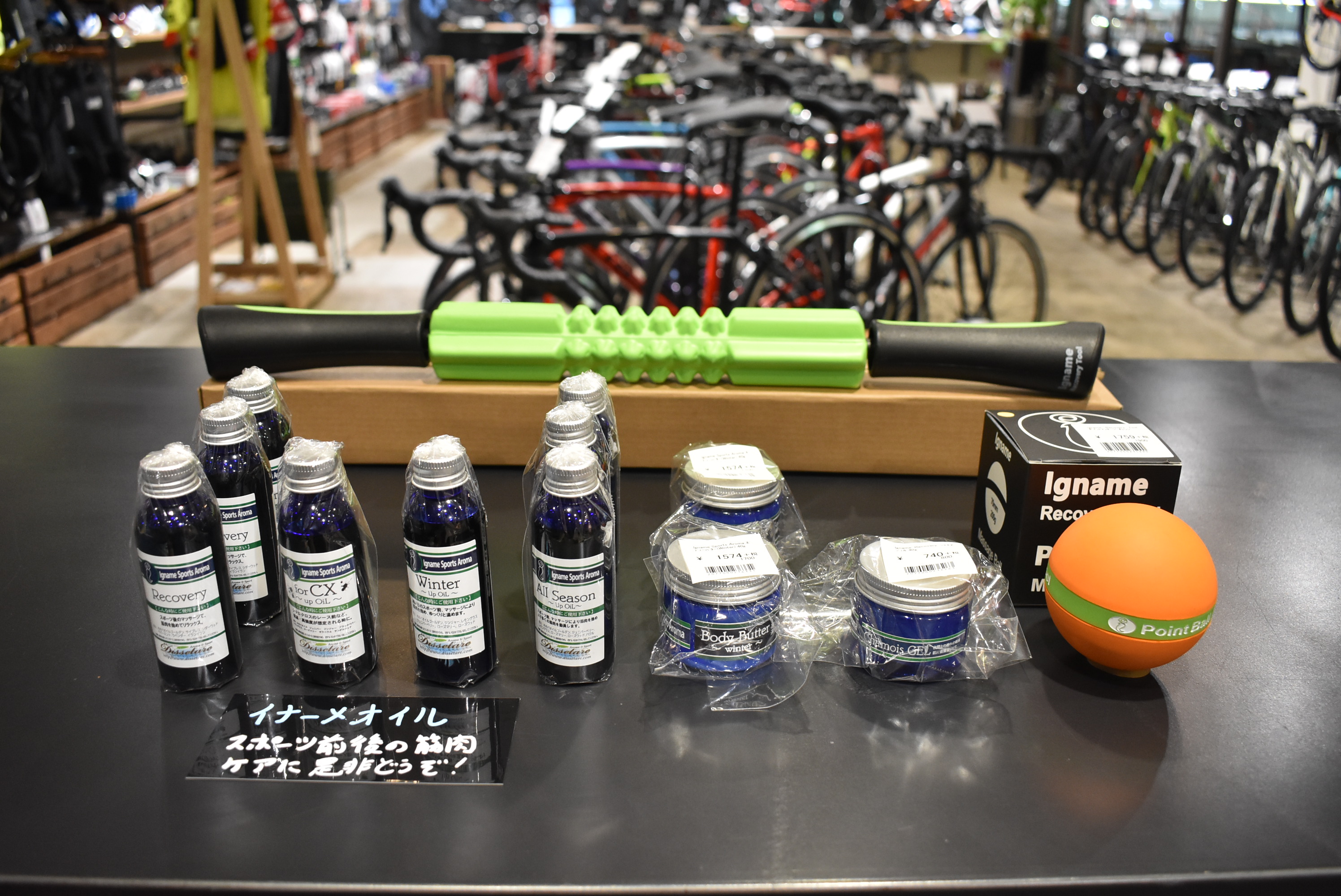 店頭にはアップオイル、リカバリーオイル、ボディーバター、マッサージボール、マッサージスティックなど扱っております。